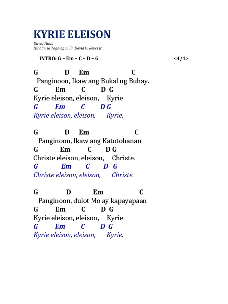 Kyrie eleison filipino meaning. Translate the kyrie in filipino. A setting of the traditional kyrie text to music.